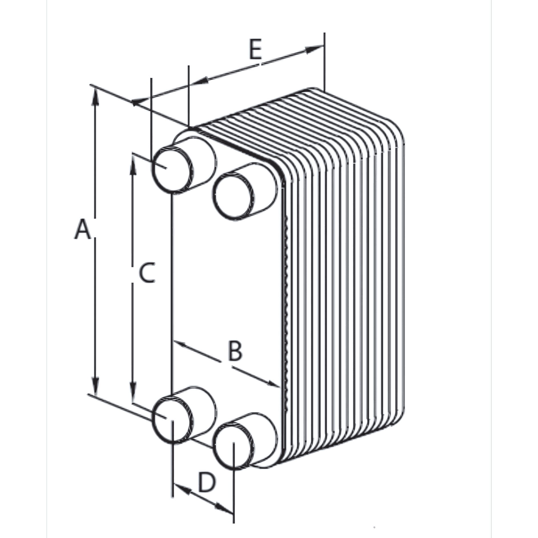 Модель А, мм B, мм С, мм D, мм E, мм Масса, кг Объем/канал (л/канал) Кол-во пластин, max