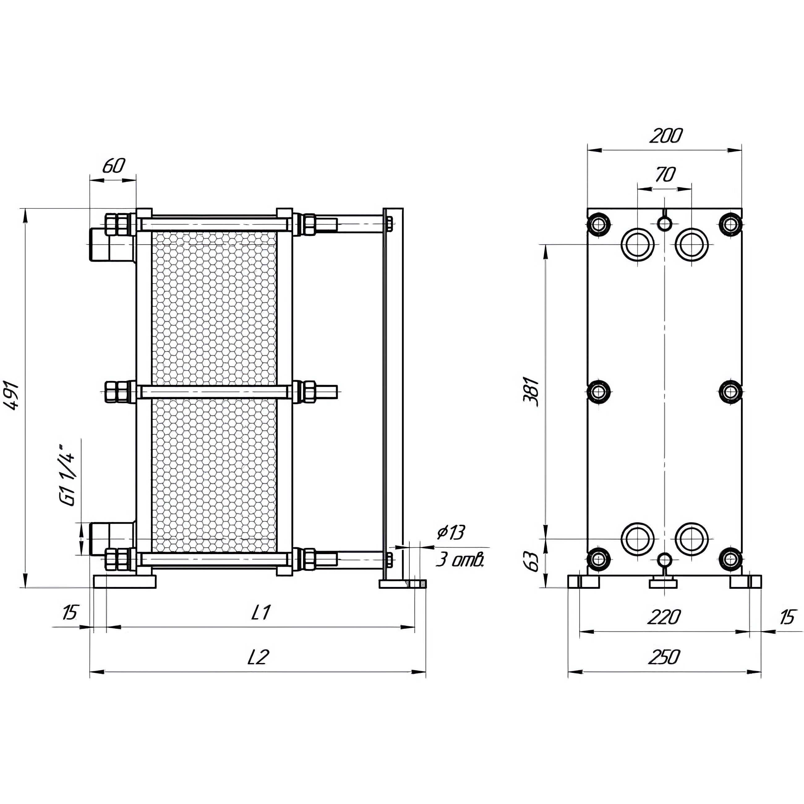 Номер рамы Порт L1, мм L2, мм Кол-во пластин Масса, кг Поверхность теплообмена, м2 Основной крепеж