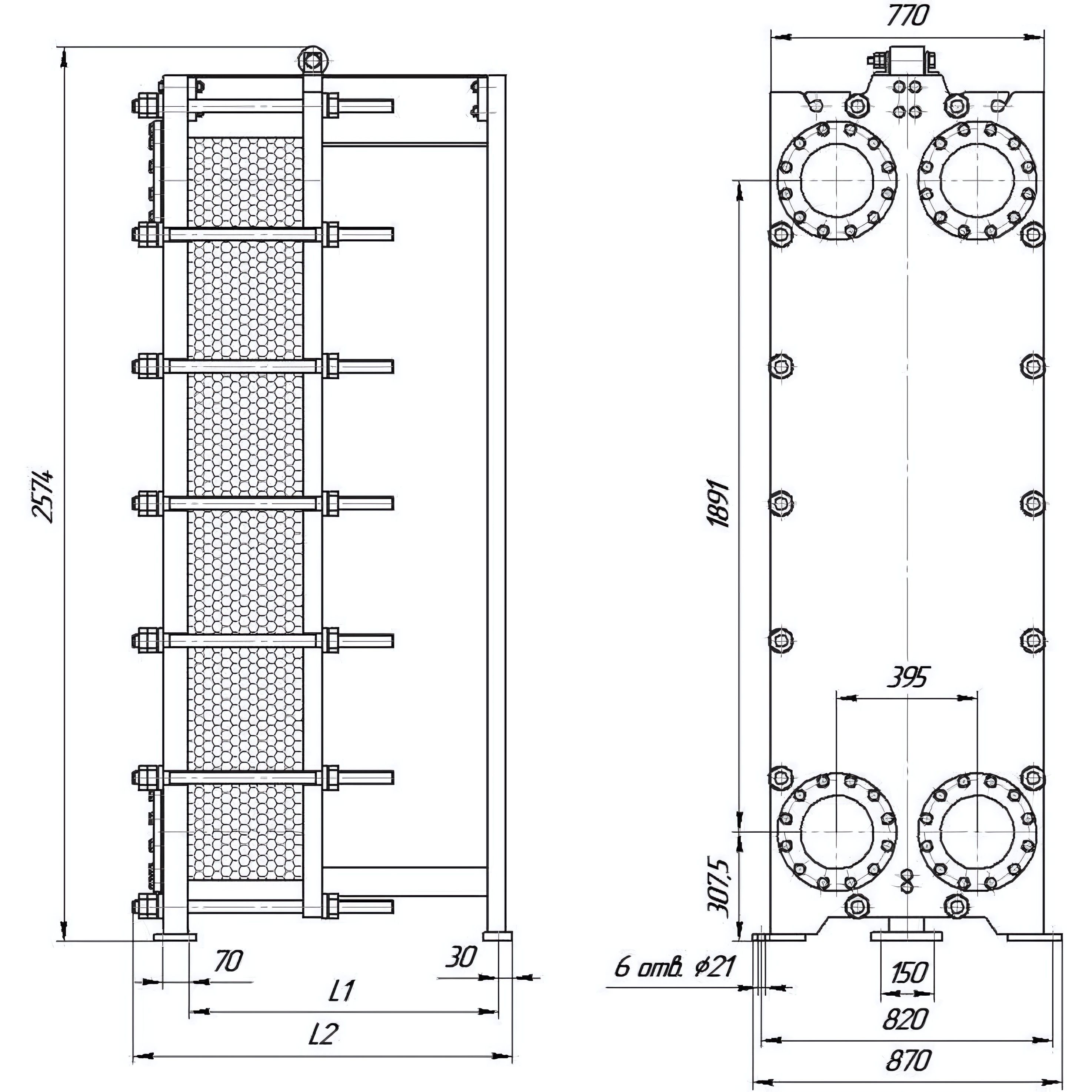 Номер рамы Порт L1, мм L2, мм Кол-во пластин Масса, кг Поверхность теплообмена, м2 Основной крепеж