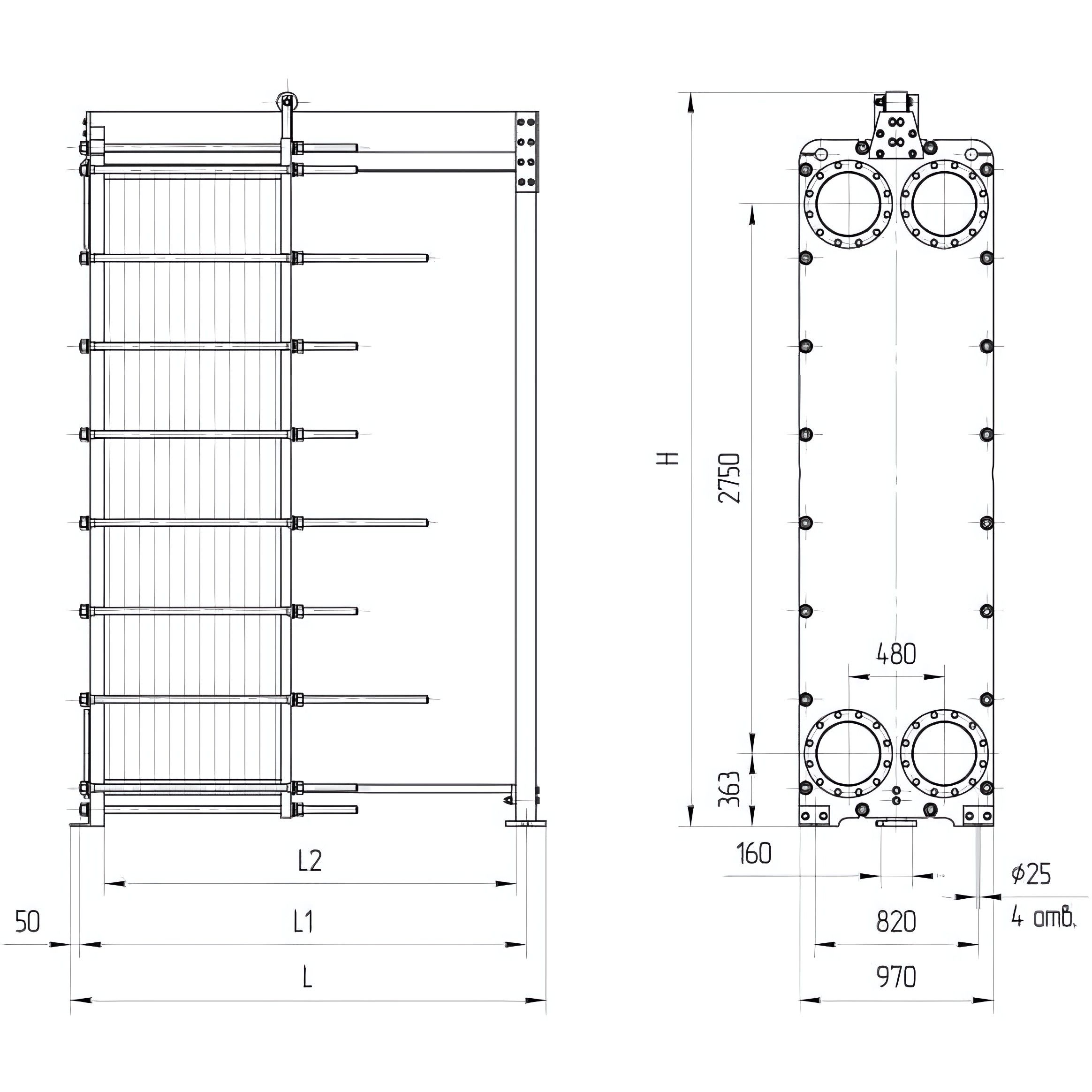 Теплообменник пластинчатый разборный Ридан НН 251 (Ду 300 мм)